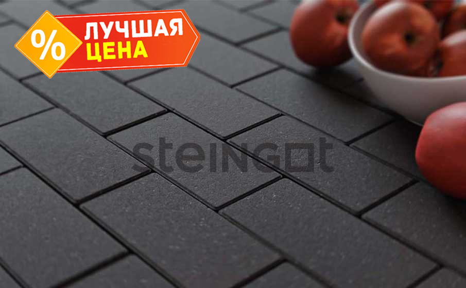 Плитка тротуарная Steingot Моно, Прямоугольник, фаска 1,5x1,5, черный, 200x100x40 мм